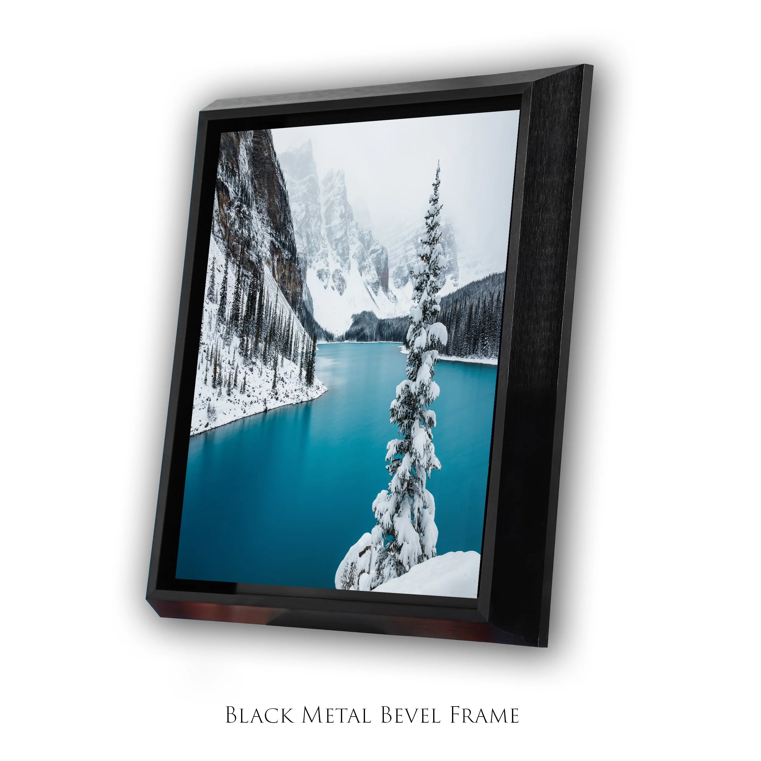 • Black Metal Bevel Frame - The brushed black anodized finish makes the Bevel Frame a perfect choice for displaying high-end metal prints. The Bevel is my favorite metal frame. It is impressive, rich looking and substantial enough to easily hold the largest print we offer. This frame sets the metal print off with a 1/2'“ floating channel. All frames come with a pre-installed wire for hanging right out of the box. This frame is 2 1/8” deep, and adds 4” onto the artworks overall size. For example, a 24x36” print becomes 28x40”.