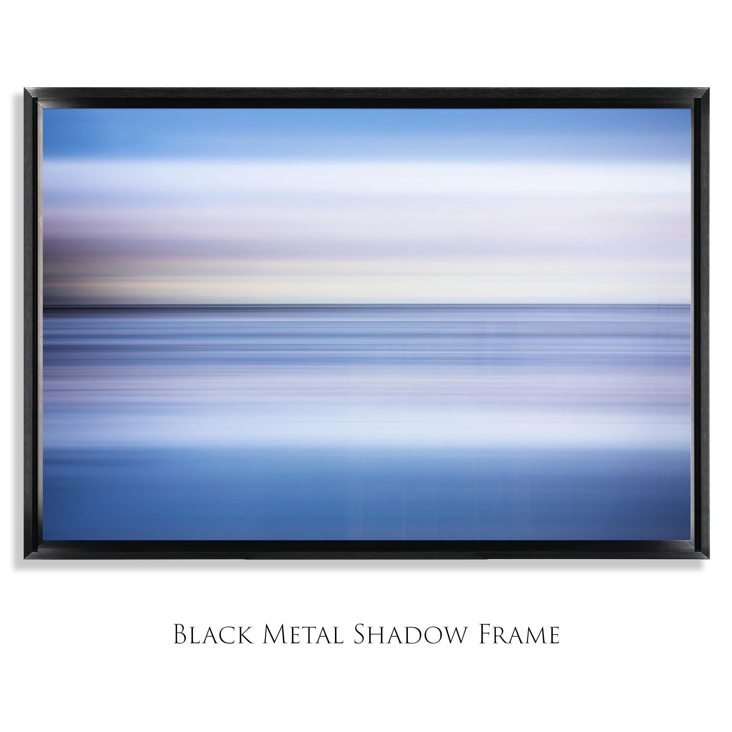 • Black Metal Bevel Frame - The brushed black anodized finish makes the Bevel Frame a perfect choice for displaying high-end metal prints. The Bevel is my favorite metal frame. It is impressive, rich looking and substantial enough to easily hold the largest print we offer. This frame sets the metal print off with a 1/2'“ floating channel. All frames come with a pre-installed wire for hanging right out of the box. This frame is 2 1/8” deep, and adds 4” onto the artworks overall size. For example, a 24x36” print becomes 28x40”.