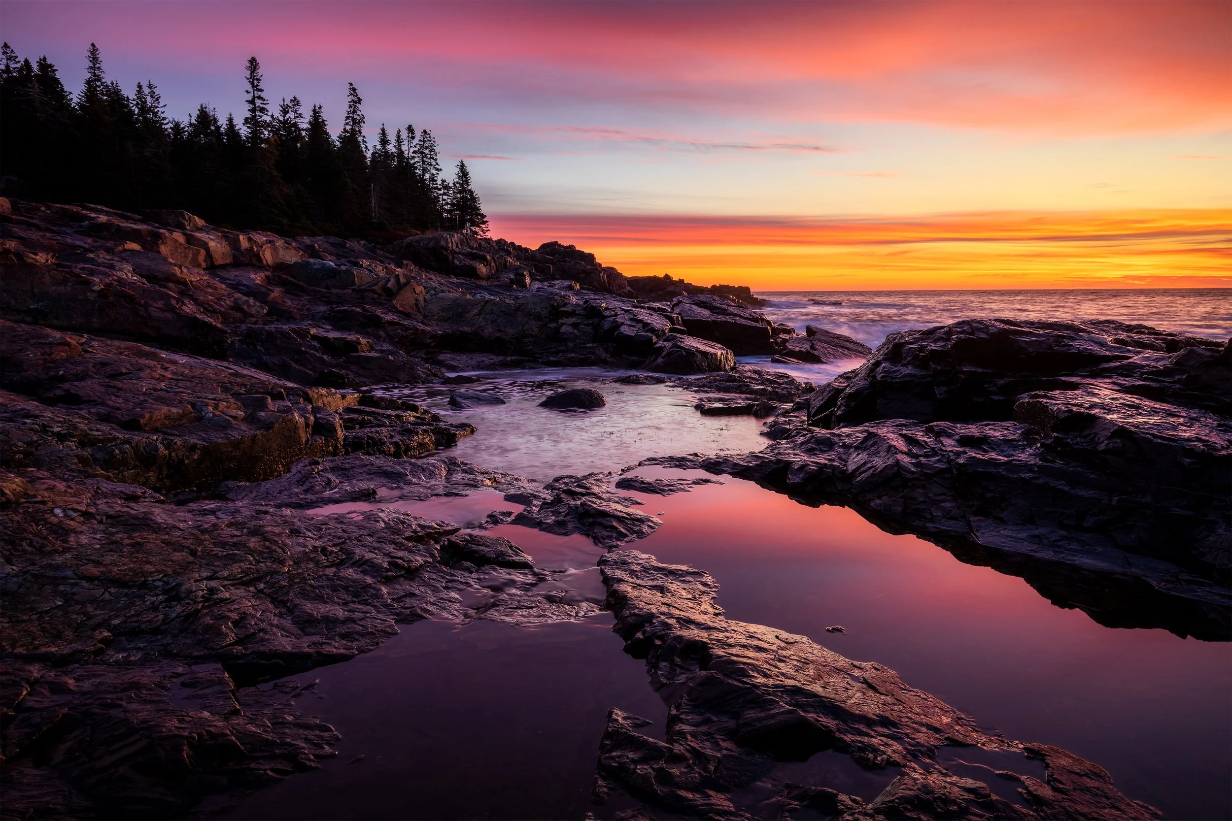 Dense hardwood forests in peak autumn color, rugged and rocky Atlantic coastline, and a plethora of streams and lakes.